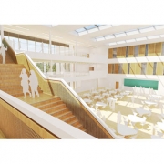 Quorn Hall originally housed a sports hall, changing rooms, offices and a small lecture theatre. The re-development project to create the new, much larger lecture theatre had to be carried out whilst the main building and café facilities were in constant use.