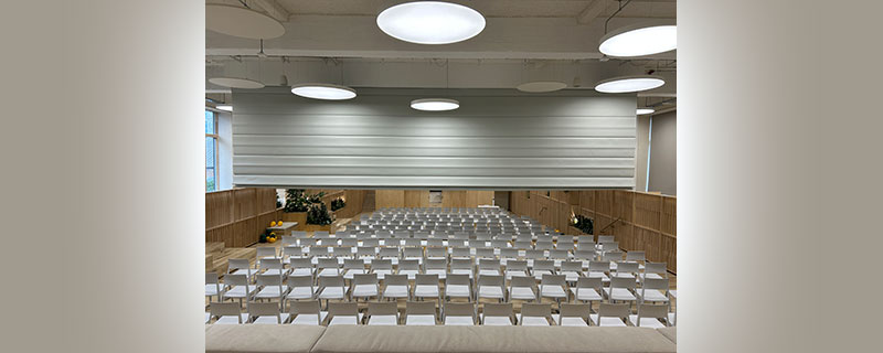 “On any given day, the college may need to cater for many different classes and events, and the simplicity and speed of operation of the Multiroll means the room can be opened up or divided into two between one class finishing and the next one starting.